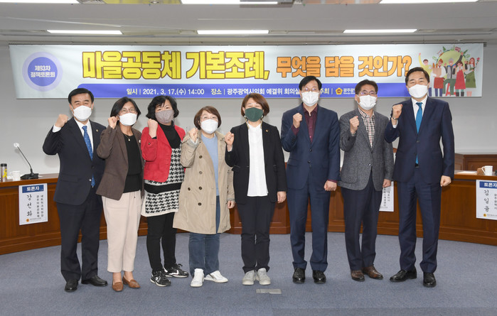 [광주=세계타임즈 손권일 기자] 17일, 광주시의회 예산결산특별위원회실에서 「마을공동체 기본 조례」 마련을 위한 정책토론회가 개최됐다.