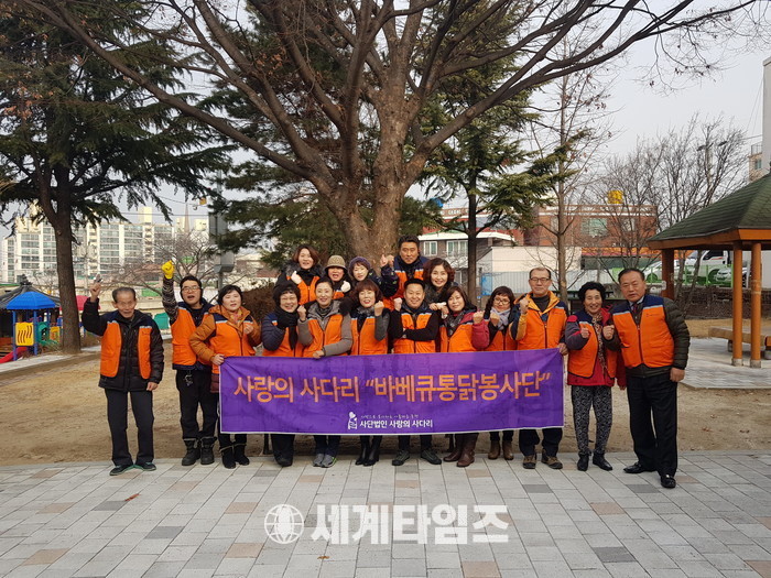 [대전=세계타임즈 이장성 기자] 6천명 화원들이 활동하고 있는 SNS 봉사단체인 사랑의 사다리 밴드(리더 이정제)는 2일 동구 홍도동 동산경로당에서 바베큐 통닭 120마리를 현장에서 직접 구어서 홍도동 관내 8곳의 경로당에 전달하면서 사회적 효행을 실천 하였다.