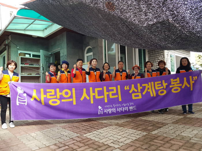 매화노인정 신영숙 회장은 “오늘 사랑의 사다리 밴드 봉사단체에서 맛있는 삼계탕을 지원해주어서 큰 힘과 위안이 된다.”면서 감사함을 전했다.
