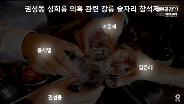 국민의힘 권성동 사무총장의 성희롱 의혹이 사실로 밝혀진 가운데, 지난 10일 밤 11시부터 진행된 술자리에는 윤석열 후보를 비롯 이준석 대표와 김은혜 의원 등이 함께 했던 것으로 알려졌다. 사진=열린공감TV 제공