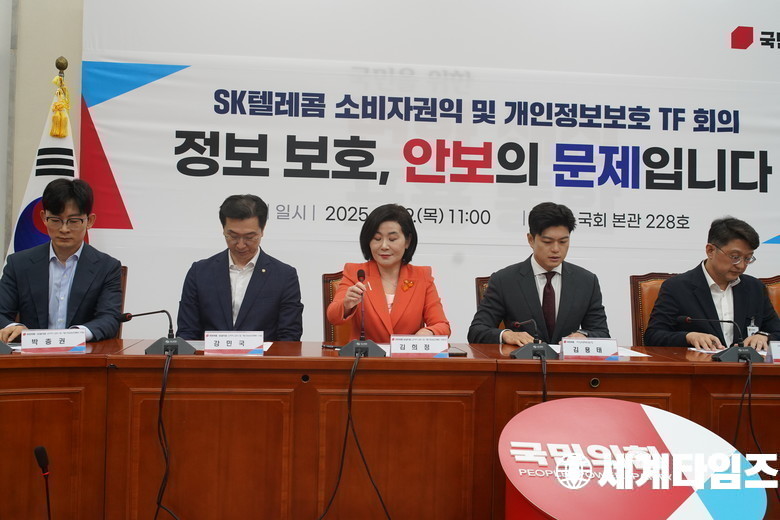 김용태 국민의힘 비상대책위원장이 19일 오전 서울 여의도 국회에서 열린 SK텔레콤 소비자권익 및 개인정보보호 TF 회의에서 발언을 하고 있다.