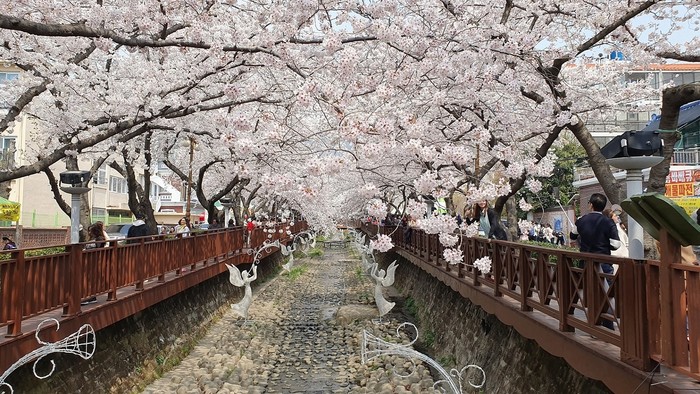 여좌천은 장복산에서 발원해 여좌동을 가로질러 바다로 유입된다. 봄이면 천을 사이에 두고 약 1.5km 구간에 벚꽃터널이 만들어지는데 이 광경을 보기 위해 매년 수백만 명이 찾는다.