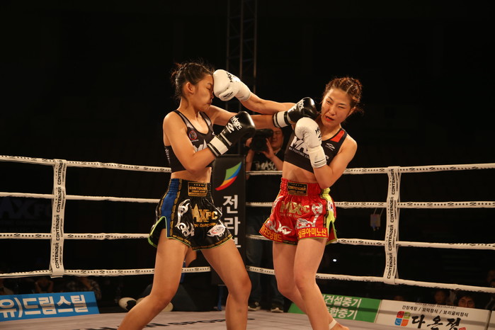 [세계타임즈 김인수기자] 지난 6월 22일 익산 실내체육관에서 열린 maxfc 19 in 익산 메인리그 6경기 여성밴텀급 1차 방어전에서 격돌한 박성희(목포스타)와 태국의 핀 아람(18, 삭차트라짐)의 경기는 심판 5:0 판정으로 박성희가 판정승을 거뒀다.