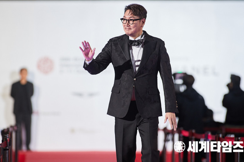 제29회 부산국제 영화제 개막식에 참석한 배우'조진웅'이 포즈를취하고있다.