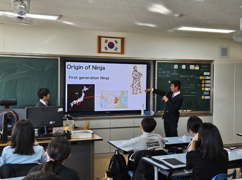 응원은 미리 공부한 영어 문장을 활용하여, 원어민과 협력한 한-일-영 3개 언어를 동시에 활용하는 이색적인 수업을 진행했다.
