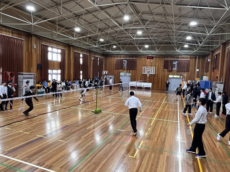 4교시에는 강당에 모여 친선 배드민턴 경기를 진행하였다. 양국 학생을 혼합하여 팀을 나누고, 팀별로 응원했다.