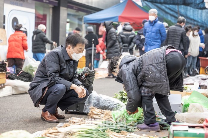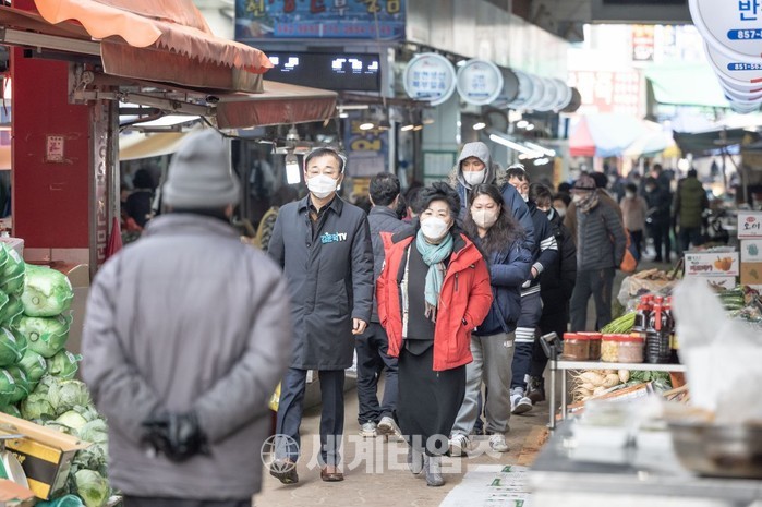 이날 김윤덕 의원은 차가운 날씨 속에서도 물건을 파는 할머니들의 손을 잡고, 정을 나누는 등 코로나19로 힘든 현실에서도 환한 웃음을 잃지 않았다.