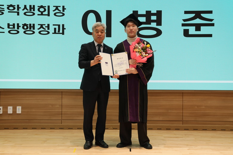 졸업생 중 전기에너지시스템과 이찬우(만 25세·남) 씨가 전체 수석, 환경보건학과 한지연(만 21세·여) 씨가 전체 차석을 차지했다. 이 밖에도 학과별 수석 9명, 공로상 14명, 기타포상 5명 등 총 30명이 수상의 영예를 안았다. 또한 천범산 총장은 어려운 여건 속에서도 성실히 학업을 완수한 장애인 학생 2명을 선정해 격려패를 수여했다.