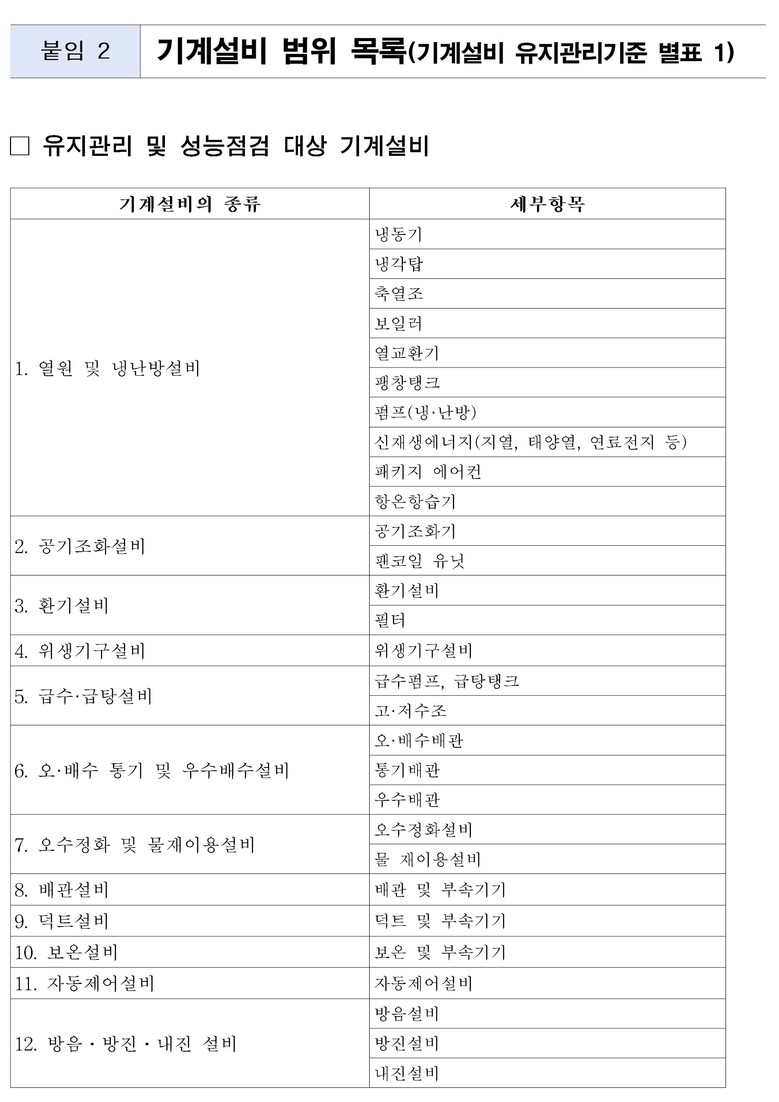 기계설비 성능점검은 「기계설비법」 제17조에 따라 연면적 1만㎡ 이상 건축물 등의 관리주체가 설비의 안전과 성능 확보를 위해 매년 실시해야 하는 법적 의무 사항이다.