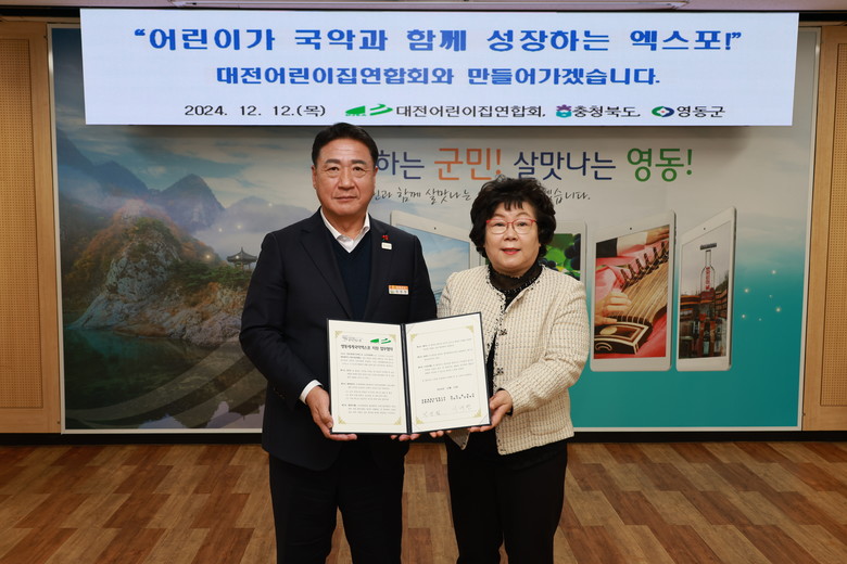 이에 이애란 대전어린이집 연합회장은 “어린이들이 영동세계국악엑스포를 통해 우리 문화의 뿌리인 국악을 배우고 창의적인 경험을 쌓을 기회를 얻게 되어 매우 기쁘다.”며, “소속 어린이집 회원과 학부모와의 긴밀한 소통을 통해 엑스포 홍보 및 현장 학습 참여로 엑스포 성공을 위해 적극 협력하겠다.”고 화답했다.