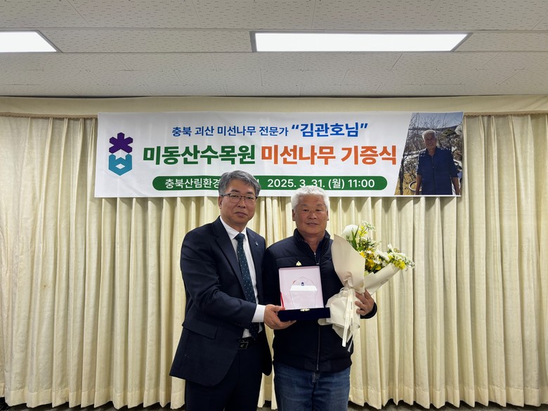 이번 기증식은 충북 괴산군에서 괴산분재농원을 운영하고 있는 김관호 씨가 20년 이상 정성으로 가꾸고 길러온 미선나무 60그루를 미동산수목원에 기증하는 것을 기념하기 위해 마련되었다.