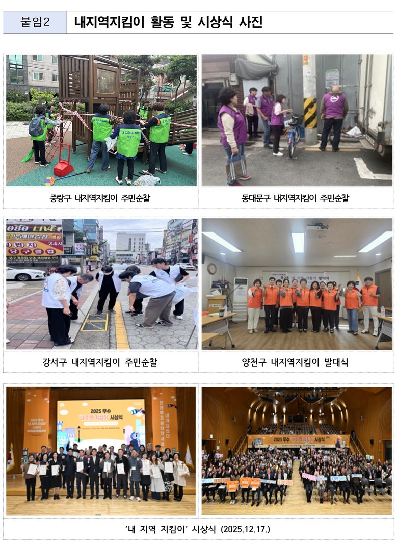 이와 함께, 25개 자치구에서는 동네 불편 유발 지역과 취약요소를 잘 알고 있는 ‘내 지역 지킴이’ 요원 5,771명이 활동하며, 총 17만 8천여 건의 불편사항을 신고하여 시민들의 안전 위협 요소를 선제적으로 발견하고 신속하게 해결할 수 있도록 하였다.
