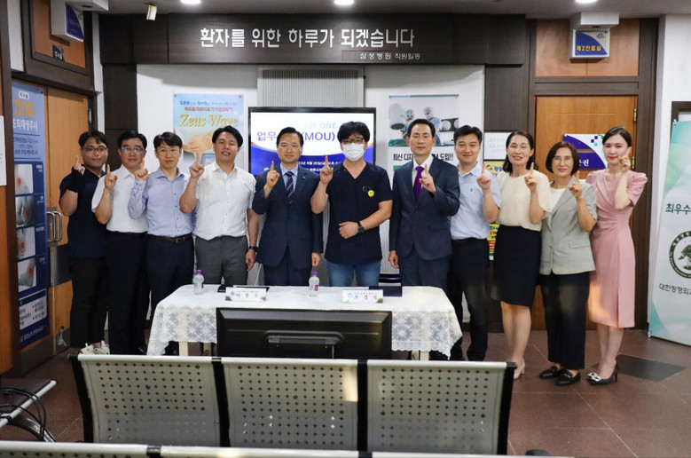 | ▲신천지예수교 증거장막성전 도마지파 정읍교회와 삼성연합정형외과 일행들이 협약을 마치고 기념촬영을 하고 있다 |