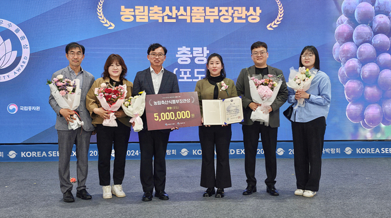 [충북 세계타임즈=이현진 기자] 충북농업기술원(원장 조은희)에서 육성한 포도 ‘충랑’ 품종이 2024년 제20회 대한민국우수품종상 대회에서 농림축산식품부 장관상을 받았다.
