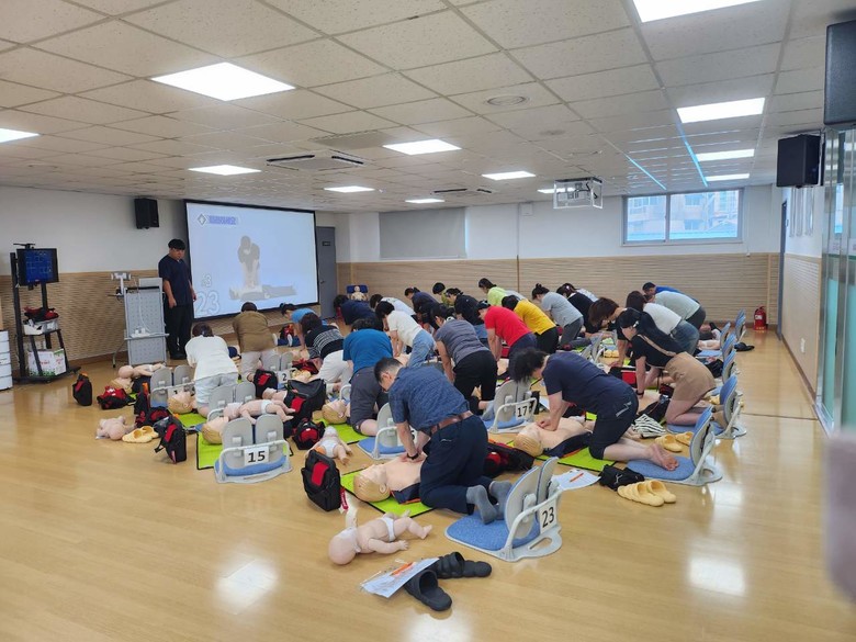 - 심폐소생술(CPR)부터 자동심장충격기(AED) 사용법까지 실습 위주 구성... 2시간 집중 교육