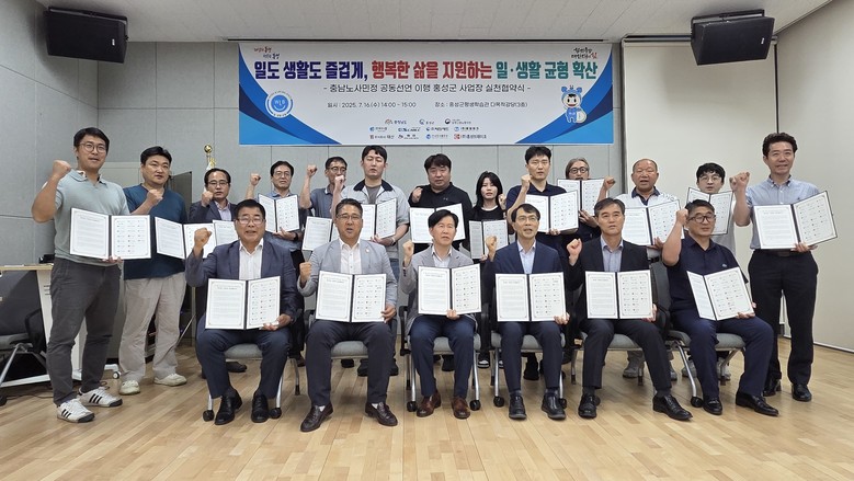 [충남 세계타임즈=이현진 기자] 충남도는 16일 홍성군 8개 사업장이 충남노사민정공동선언의 구체적인 이행을 위해 실천 협약을 체결하고, 일·생활 균형 확산에 힘을 합쳐 나가기로 했다.