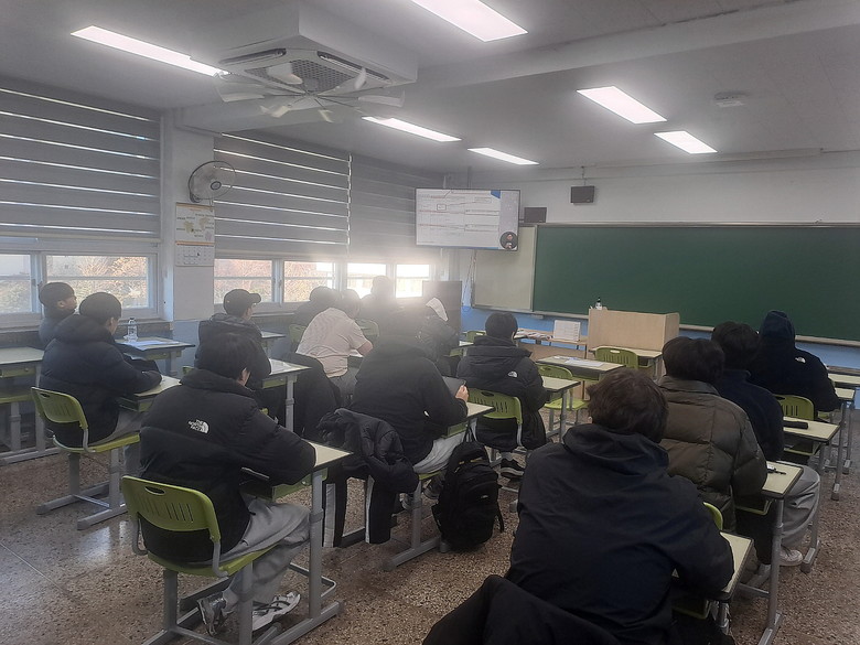 ▲ 제작된 영상으로 교육받고 있는 고등학생들 모습