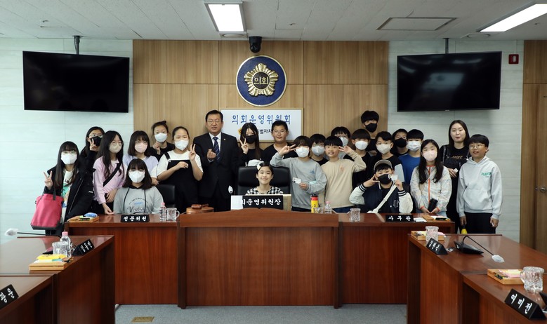 특히, 학생들은 의회운영위원회를 방문하여 의사일정, 의안, 의회 운영 관련 조례, 예산 등이 어떻게 처리되는지를 의회운영위원장인 유인호 의원에게 직접 설명을 듣고 의석에서 의안을 처리하는 체험도 했다.