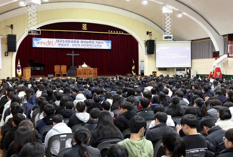 [대구 세계타임즈=한윤석 기자] 계성중학교(교장 장영중)는 7일(금) 학교 강당에서 대구 3.8 만세운동 제106주년 기념식을 개최한다.