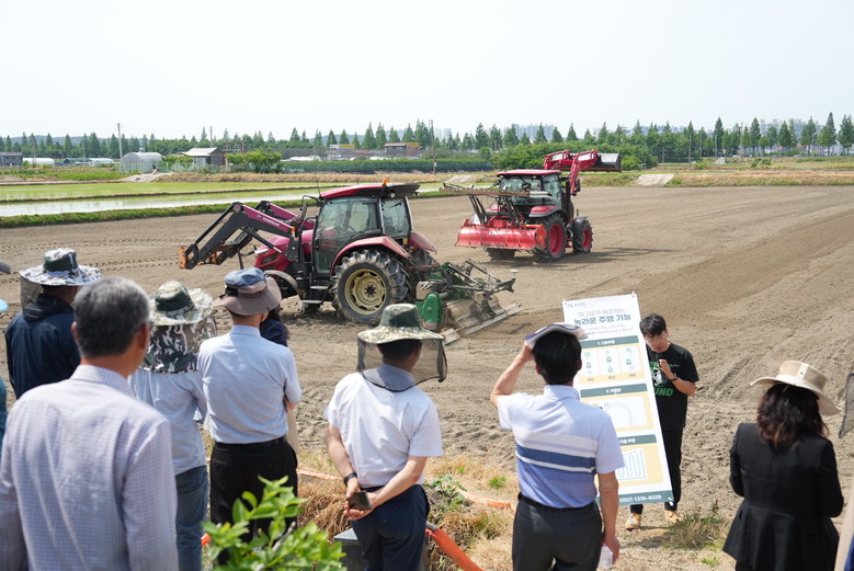 특히 이날 시연된 무논직파 기술은 볍씨를 바로 논에 파종함으로써 육묘, 못자리 설치 등 일련의 공정을 생략할 수 있어 노동력을 최대 40%까지 절감하고, 경영비도 20~30%가량 줄일 수 있는 획기적인 재배법으로 평가받고 있다. 단, 이 기술의 성공적 정착을 위해서는 파종 전 논의 균평 작업과 조류 피해 및 잡초 방제를 위한 핵심 기술 실천이 필수적이다.