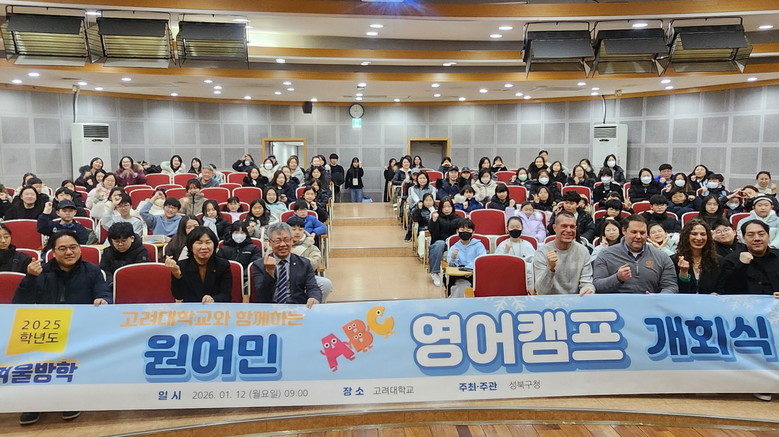 [성북구 세계타임즈=이장성 기자] 서울 성북구(구청장 이승로)가 지난 1월 12일 개회식을 시작으로 고려대학교 캠퍼스에서 초등학교 고학년 학생 60여 명을 대상으로 운영한 ‘고려대학교 원어민 영어캠프’를 1월 23일까지 약 2주간 진행했다.