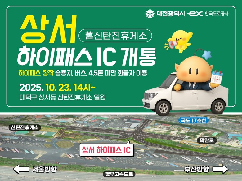 한편, 이번 하이패스IC는 하이패스 전용 시설로 운영되며, 4.5톤 이상 차량은 이용이 불가하다.
