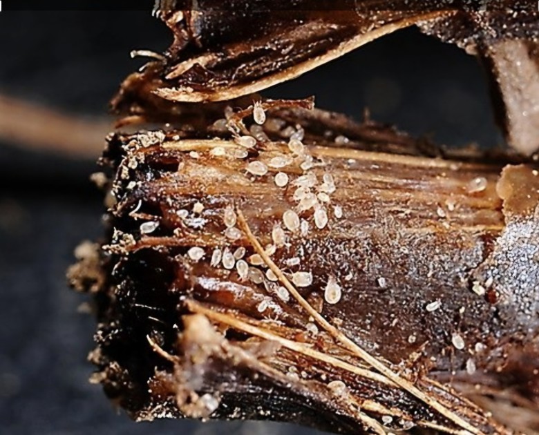 뿌리응애는 주로 맥문동 뿌리나 뿌리줄기 등 땅속 부분에 기생해 작물 생육 저하와 수량 감소를 초래하는 주요 해충이다.