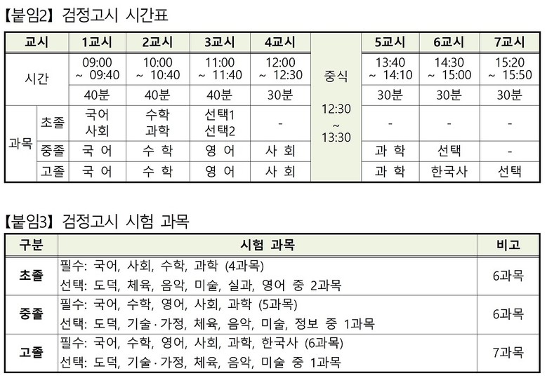 * 찾아가는 검정고시 시험서비스: 고사장 학교까지 이동이 어려운 중증장애인 지원자를 위해 자택 혹은 본인 이용 복지관을 고사장으로 별도 운영하는 제도로 2018년도 제2회 시험부터 서울시교육청이 전국 최초로 시행했다.