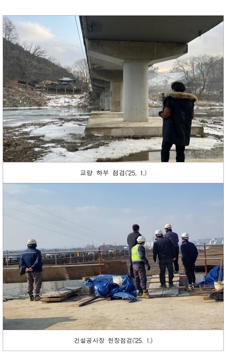 이번 점검에서는 도로 지반침하 및 급경사지·도로부속물 손상 여부를 비롯해 △교량·터널 등 시설물 점검 △교통안전시설 파손 △도로포장 침하 및 파손 △배수시설(측구, 배수구) 막힘 △결빙 취약구간(교량, 터널, 고갯길 등) 점검 등 귀성·귀경길 교통안전 및 편의와 직접 관련되는 부분들이다.