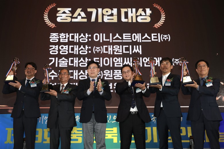 부문별 대상으로 ▲경영대상에 자동차 부품 제조업체인 ㈜대원디씨(대표 이강완, 청주) ▲기술대상에 반도체 소재 제조업체인 티이엠씨씨엔에스㈜(대표 이동준, 보은) ▲수출대상에 산업용 원단 제조업체인 ㈜원풍(대표 이문희, 청주) ▲노사화합대상에 터보 블로워 제조업체인 터보윈㈜(대표 전형주, 청주) 등 4개 기업에 도지사 표창을 수여했다.