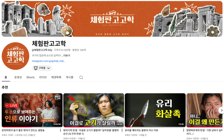8만 명의 구독자를 보유한 유튜브 채널 ‘체험판 고고학’의 통해 선사시대 도구 제작, 사냥 체험 등 독창적인 교육 프로그램을 운영하고, 침산야영장에서 이색 숙박 서비스도 제공한다.