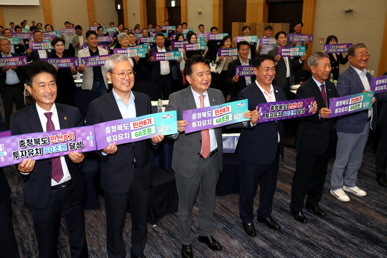 충북도는 민선 8기가 출범한 지 채 3년이 못 돼 대기업 중심 첨단 우수기업 투자유치 60조 원 공약 100%에 해당하는 60조 1,452억 원을 달성하였다. 이는 역대 최단기간 내 최대 투자유치 실적으로 대내외적으로 어려운 환경에서 이뤄낸 값진 성과이다.