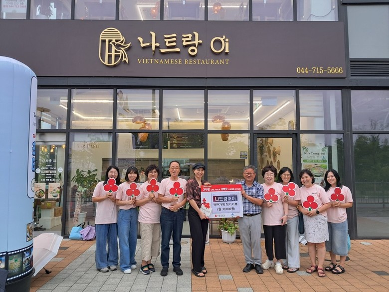 [세종 세계타임즈=이채봉 기자] 세종특별자치시 나성동지역사회보장협의체(공동위원장 박재혁·박찬양)가 지난 11일 베트남 음식점 ‘나트랑어이’(대표 한유라)와 착한가게 기부 협약식을 진행했다.