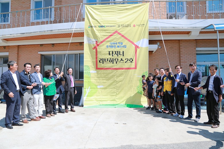 충북도가 올해부터 시작한 ‘다자녀 가정 주거환경 개선사업’은 민관 협력 기반 저출생 대응 프로젝트로, 도내 주거환경이 열악한 다자녀 가정에 가구당 5,000만 원 상당의 주택 리모델링을 지원한다.