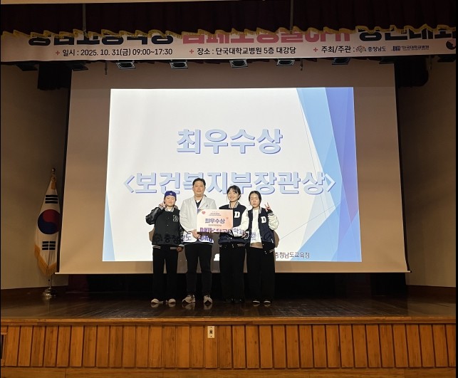 천안청수고는 상황극 내용의 적절성, 술기의 완성도, 이론 평가 등에서 높은 점수를 받아 최우수상(보건복지부장관상)의 영예를 안았다.