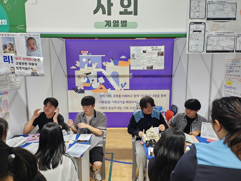 교과 부스에서는 학생들이 중심이 되어 교과서, 교수학습과정, 평가, 과목별 세부능력 특기사항 등을 전시해 교과의 특성에 관한 세부 정보를 제공하고, 선배와 후배의 학교생활에 관한 자연스러운 소통의 장을 마련했다.