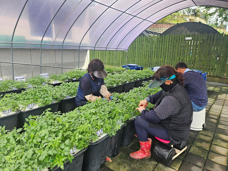 생산성 향상 효과도 분명하게 나타났다. 양분농도 EC 1.0dS/m 조건에서 재배한 결과, 상토 화분 재배에 비해 줄기 길이는 20%, 굵기는 27% 증가했고, 생산량은 2.2배(20평 기준 156kg)로 늘었다. 경제성 분석에서도 긍정적인 결과가 도출됐다, 경로당 유휴지 활용할 경우, 20평 기준 연간 생산량은 626kg로 약 343만원의 매출을 올릴 수 있는 것으로 분석됐다.