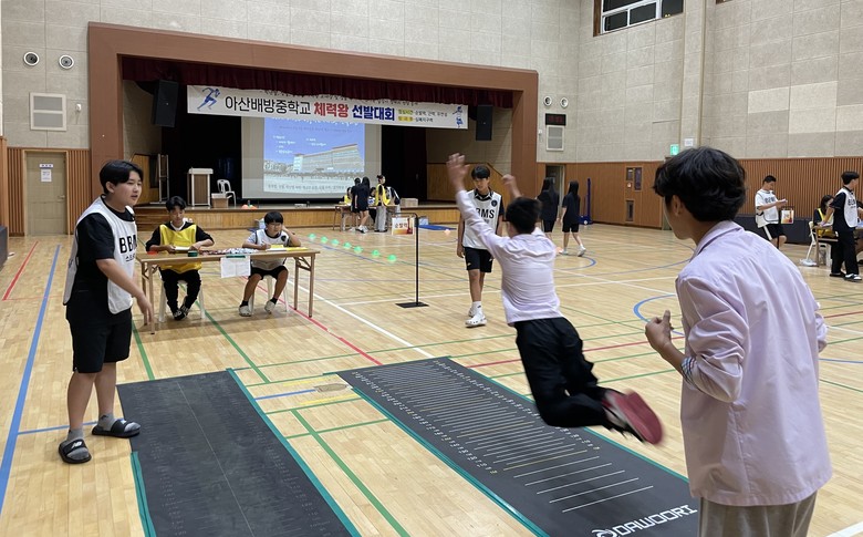 [아산시 세계타임즈=백택기 기자] 아산배방중학교(교장 이병례)는 지난 8일 점심시간과 방과 후에 승리관에서 ‘2024 체력왕 선발대회’를 개최하였다.