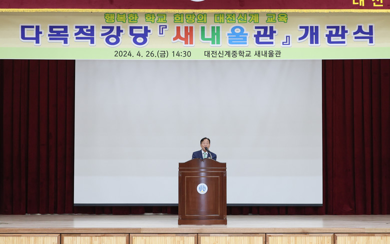 [대전 세계타임즈=이채봉 기자] 대전신계중학교(교장 고영우)는 4월 26일(금) 오후 2시30분에 새내울관(다목적강당) 개관식을 개최하였다고 밝혔다.