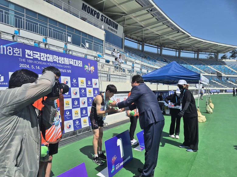 [논산시 세계타임즈=백택기 기자] 논산중학교(교장 이우열) 2학년 오환빈 학생이 지난 14일(화)~17일(금) 전라남도 목포에서 개최된 제18회 전국장애학생체육대회에서 충청남도 대표로 출전하여 육상 트랙 멀리뛰기 금메달, 100m에서 동메달을 획득했다.