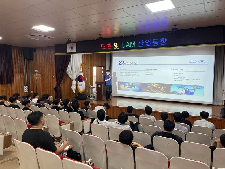 28일(금)에는 인터내셔널 드론 컴퍼니(IDCO)의 박상현 대표를 초청해 4차 산업 중 모빌리티의 핵심 역량인 무인기 드론과 도심항공교통(UAM)의 산업동향에 대한 강의를 듣고 취업진로를 학생들이 직접 설계해보는 시간을 가졌다.
