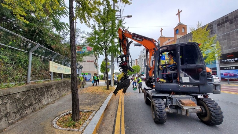 낙과기에는 횡단보도, 버스정류장 등 유동 인구 밀집 지역을 중심으로 인력과 진동수확기 등 장비를 투입해 열매를 집중 수거하고 있다. 또한 수분기에는 적화유도제를 살포해 열매 착과량을 줄이는 예방 조치를 병행하고 있다.