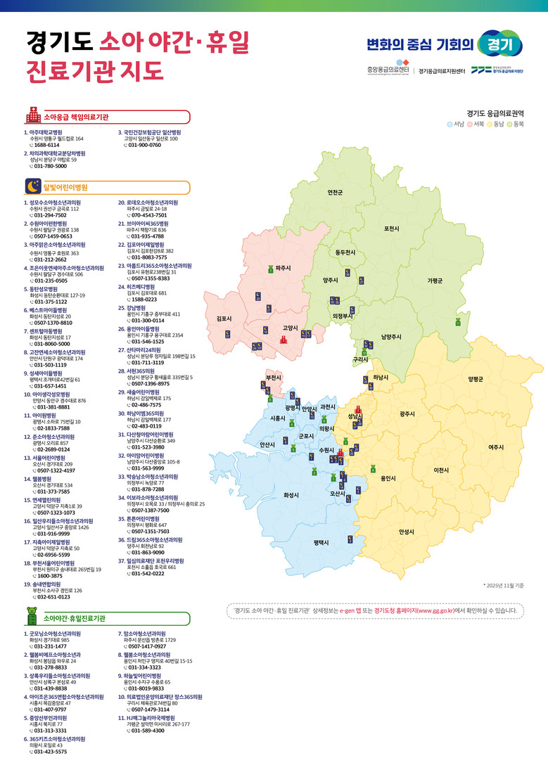 한편, 경기도 달빛어린이병원 현황은 경기도 누리집(gg.go.kr)에서 확인할 수 있다.