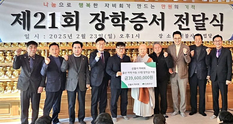 울주군 관계자는 “지역사회를 위한 신불사와 신도 여러분의 따뜻한 봉사와 헌신에 깊이 감사드린다”며 “이번 장학금이 좋은 양분이 돼 우리 학생들의 건강한 성장의 밑거름이 되길 바란다”고 말했다.