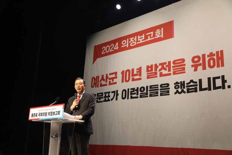 이날 의정보고회에서 홍문표 의원은 2024년 예산군 국비 확보 성과, 예산에서 추진 중인 국책사업 현황 등 지역발전을 10년 앞당기는데 기여한 주요 의정활동을 주민들께 상세히 보고했다.