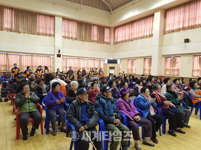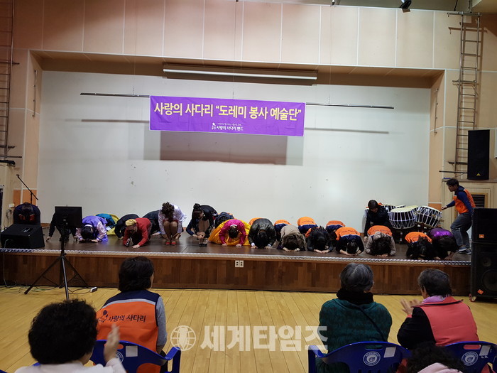 [대전=세계타임즈 이장성 기자] 6천명 봉사단체인 사랑의 사다리 밴드(리더 이정제)의 도레미 봉사예술단(단장 안경헌)은 20일 오전 10시30분에 동구 용운종합복지관(관장 강태인)에서 지역 어르신 150분을 모시고 위문공연 봉사로 사회적 효행을 실천하였다.