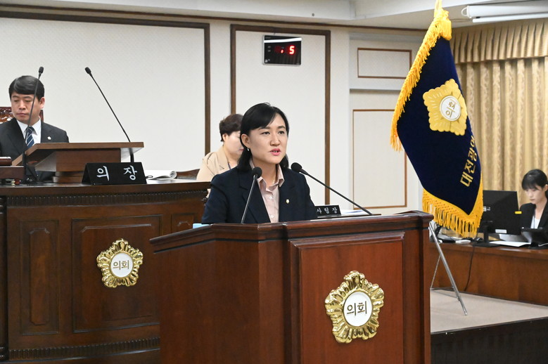 [중구 세계타임즈=이채봉 기자] 대전 중구의회(의장 오은규) 김선옥 의원은 20일 제267회 정례회 제3차 본회의에서 원도심 소상공인 상생주차장 조성사업 정상화 방안 및 소규모주택정비사업 추진 방안 구체화, 역사문화자원 활용 및 체류형 관광 프로그램 등과 관련된 구정질문에 나섰다.