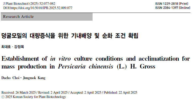그림 : 덩굴모밀 배양 논문 (Journal of Plant Biotechnology)