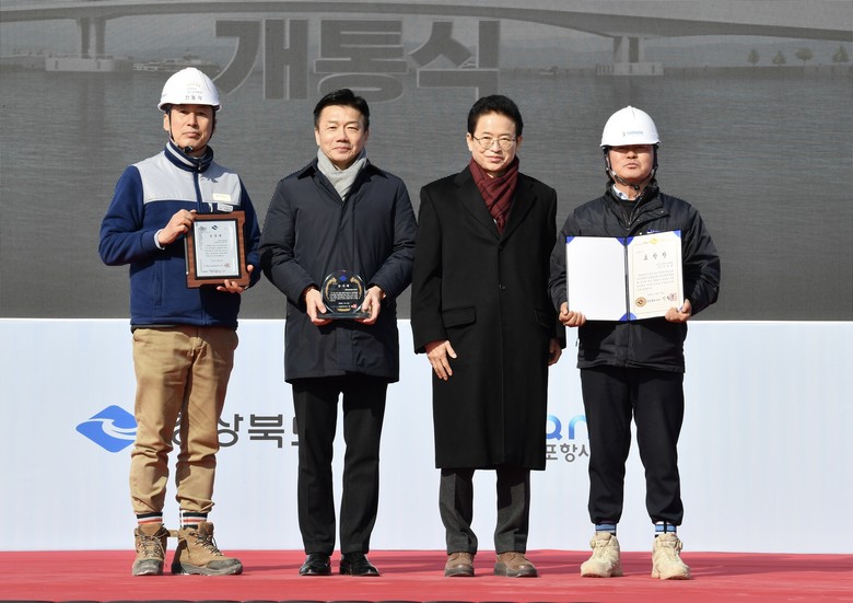 [경북 세계타임즈=한윤석 기자] 경상북도(도지사 이철우)는 31일 포항시 남구 송도동에서 북구 항구동을 잇는 해상교량(해오름대교) 건설사업인‘효자~상원 간 도로건설공사’개통식을 개최했다. 이철우 도지사, 김정재.이상휘 국회의원, 경북도의회 지역 도의원과 주민 등 300여 명이 행사에 참석했다.