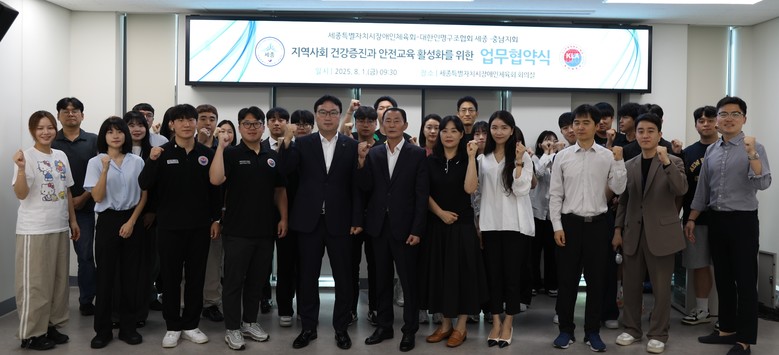 이날 협약식에는 임규모 세종시장애인체육회 사무처장과 김지태 대한인명구조협회 세종·충남지회 회장을 비롯한 양 기관 관계자 등 20여 명이 참석했다.